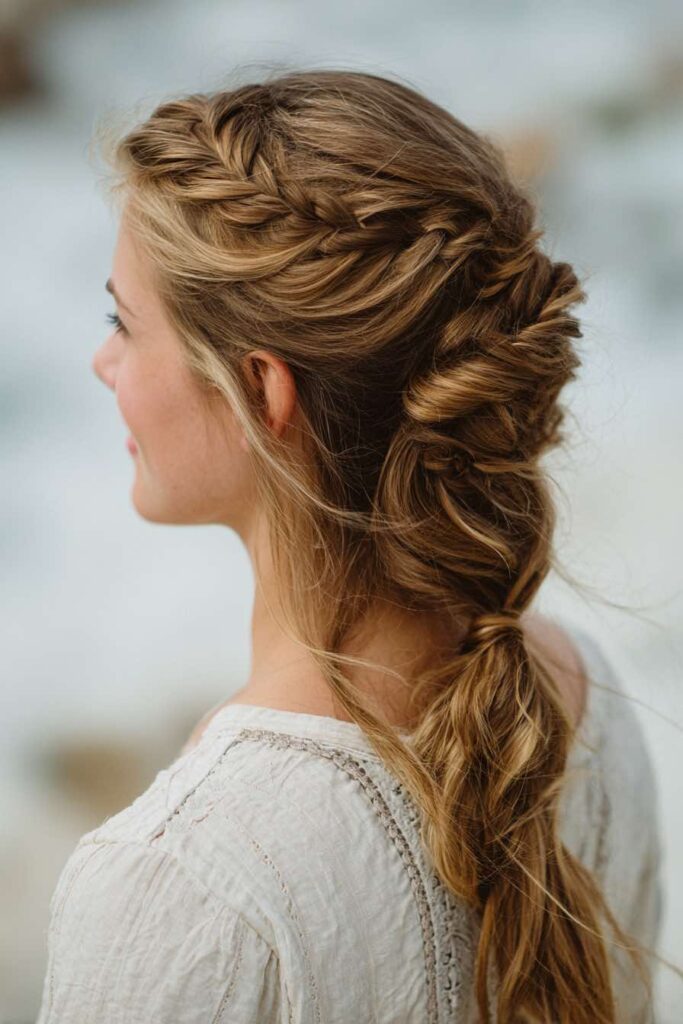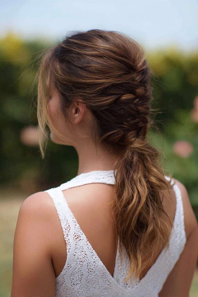 The fishtail braid is a stunning and trendy option for outdoor bridesmaids, offering a unique twist on traditional braiding styles. This hairstyle works beautifully with both casual and elegant wedding themes, making it versatile. To create this eye-catching braid, start by dividing your hair into two sections. Then, take a small piece from the outside of one section and cross it over to the other section. Repeat this process, alternating sides, until you reach the ends. You can achieve a softer, more romantic look by gently pulling at the braid to loosen it. Accessorizing with fresh flowers or delicate pins can elevate the style further, ensuring you look effortlessly chic while complementing the bride’s vision for her special day. Incorporating lightweight styling products, such as high-quality, plant-derived ingredients, can help maintain the braid’s structure and enhance your overall look.